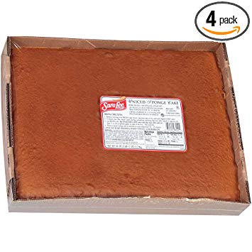 Sara Lee No Icing Sponge Sheet Cake, 12 x 16 inch — 4 per case. Delicious and versatile, our Sponge Sheet Cake is a perfect base for any signature dessert. Simply top or garnish with syrups, fruits or whipped topping to create your own special dessert.