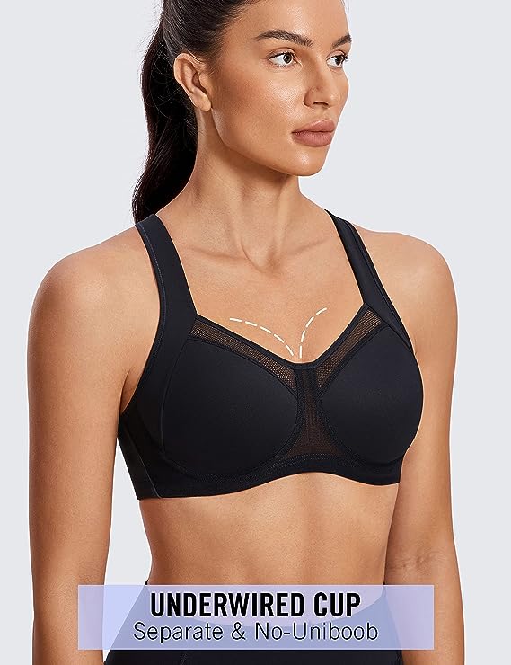This padded straps sports bra with racerback supports you well and relieve pressure on shoulders. Back closure to offer a better fit. Mesh panel on the front and side wings makes sure the bra breathes, keeps you cool and dry during the hardest workout.