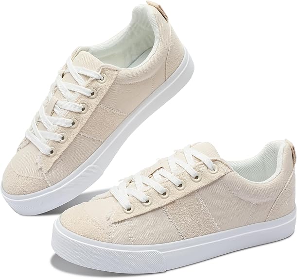 - FABRIC UPPER: Canvas upper has moderate yarn thickness,Low Top beige Skate Shoe for Lady is Breathable,Soft and Keep feet dry.