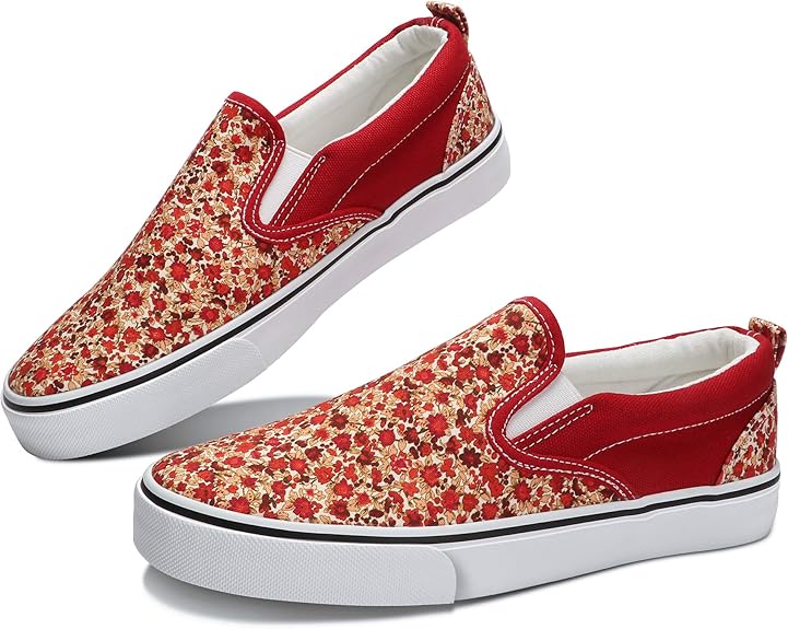 - Rubber sole:Rubber sole of Red Multi Canvas Shoes without fabric coating ,Slip ons for women will be Quiet and Soft when walking on hard surfaces or wet floor.