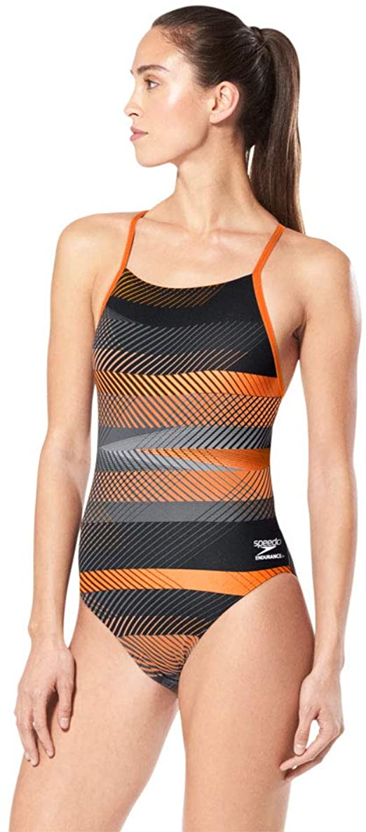 Get ahead of the competition. Endurance+ fabric helps this printed swimsuit maintain its shape and color after every swim, every season. Ultra-thin crisscross straps and a cutout back promote better range of motion and support while offering a stylish finish.
