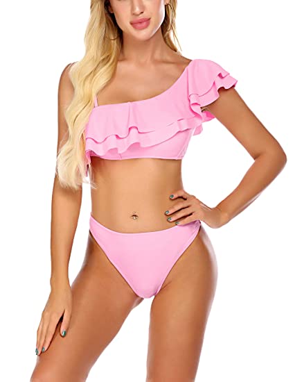 Avidlove Women’s One Shoulder Bathing Suit Ruffle Swimsuit Bikini 2 Pieces Flounce Swimwear