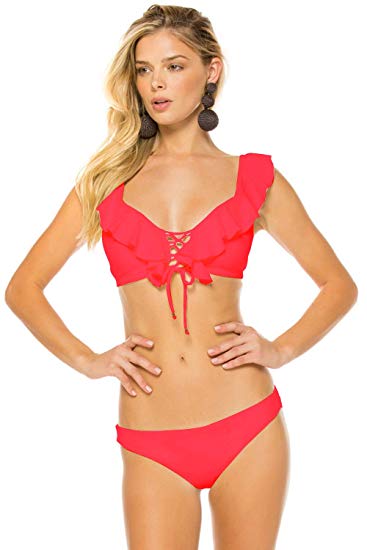 - This bikini swimwear features ruffled front, slightly padded non-underwired cups, wide shoulder straps, make you elegant, charming and sweet.