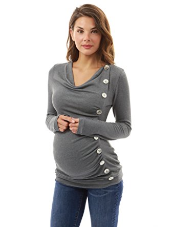PattyBoutik Mama Cowl Neck Buttons Maternity Tunic Top
