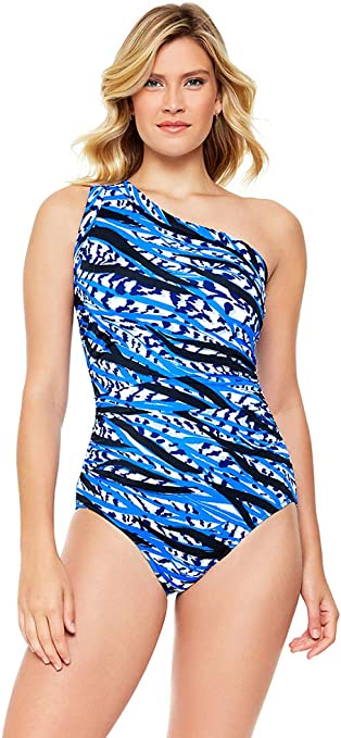 Show off one shoulder and look so chic while you’re doing it. This one shoulder one piece from Penbrooke is simply high class, with built in soft cups for subtle shaping and support. Create an hourglass figure that hugs your curves in all the best ways. The all over jungle print is so vibrant and colorful, showing off your sparkling personality without you saying a word. Built in tummy control deftly nips in your waistline, hiding excess pounds like magic.