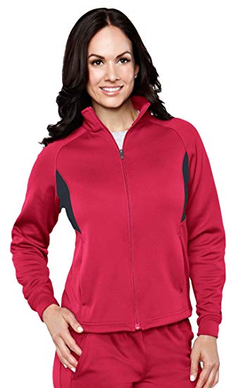 Women’s 8.8 oz, midweight polyester performance fleece jacket with mesh face, Features Tri-Mountain UltraCool moisture wicking technology, Accented with contrast panels along front and back body, two zippered front pockets and raglan sleeves, Half rib-trim cuffs and draw-cord bottom hem for a custom fit,