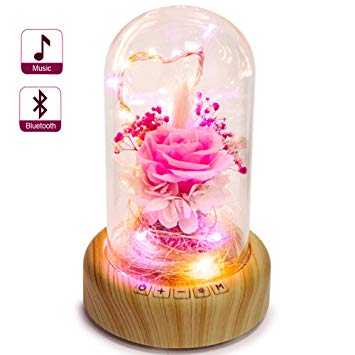 Our enchanted rose flowers lamp is made with Upscale Immortal Flowers, and comes with a LED bright glass dome and exquisite package, makes it a charming decoration in your living room, and the glass dome can be opened to add rings or anything you would like.