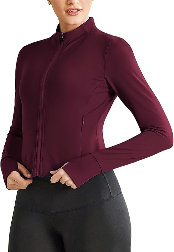 - 【Cropped & Slim Fit】Cropped athletic jacket features a fitted slim design, perfectly contouring your body shape. This stylish short length workout top highlights your waistline while providing a flattering silhouette for yoga, gym and fitness activities.