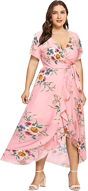 Milumia Plus Short Sleeves Belted Empire Waist Asymmetrical Party Maxi Dress