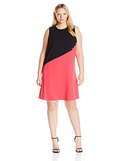Calvin Klein Women’s Plus Size Color Block Asym Hem Tent Dress