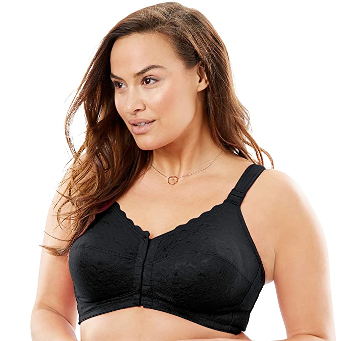 Wireless cups make this full-coverage bra perfect for comfortable, everyday wear. Ideal for larger busts, the smoothing back gives you a gentle reminder to adjust your back for better comfort. Made in a pretty lace fabric, the wider straps help prevent dig-in on the shoulders.
