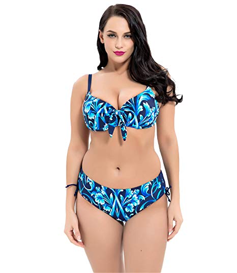 Leories Women’s Plus Size Pleated Push up Two-Piece Swimsuit Swimwear Bikini Bathing Suits