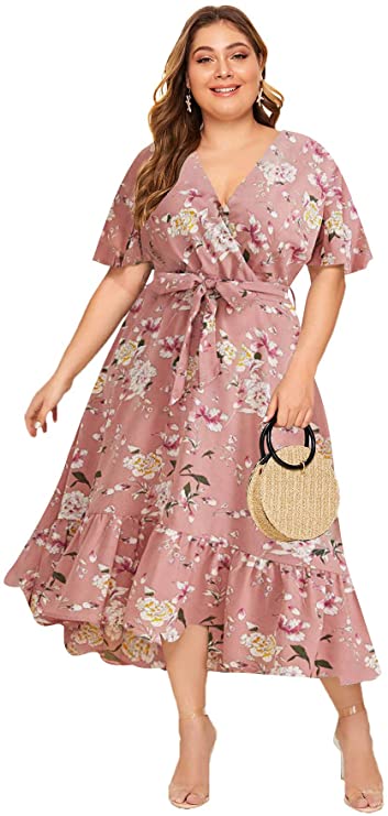 Milumia Plus Size Short Sleeve Wrap V Neck Belted High Waist Maxi Dress
