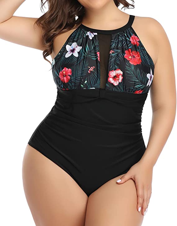 One Piece Swimsuit Tummy Control High Neck Bathing Suit Ruched Swimwear