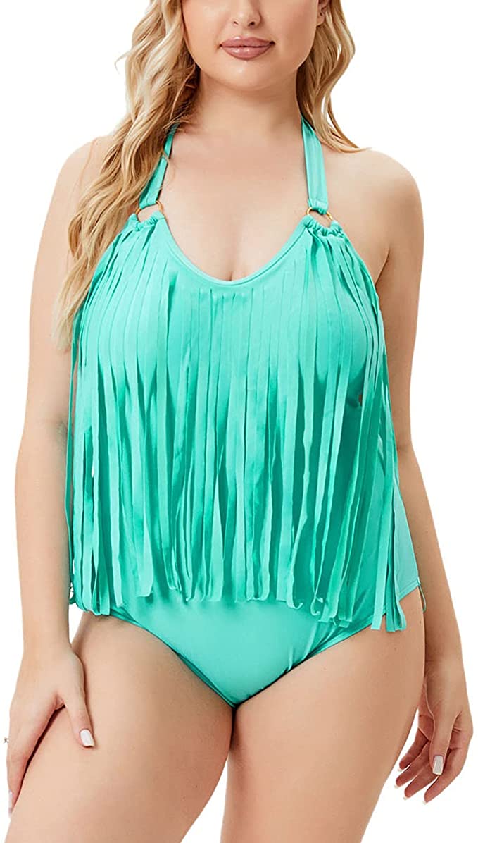 Plus Size Swimsuit Women Tankini Tummy Control Tassel One Piece Bathing Suit Vintage Swimwear Summer Beachwear