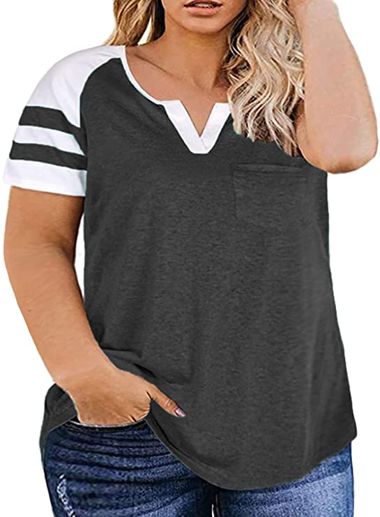 VISLILY Plus-Size Tops for Women Summer V Neck T Shirts Raglan Tees XL-4XL