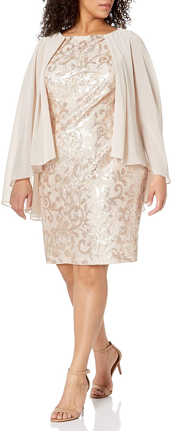 This extraordinary sequin detail cocktail dress is a chic option for your next party! the chiffon Caplet overlay gives a fresh take on coverage while giving freedom of movement. This is a perfect dress for a mother of the bride, guest of weddings or for any special evening event.