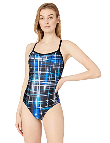 Speedo revolutionary power flex eco is good for the environment, even better for swimmers. Made with 100% recycled nylon, it retains its shape up to ten times longer than traditional swimwear fabrics. It also offers four times the compression and is twice as strong. Details include a colorful laser print and thin fly back straps for serious mobility.