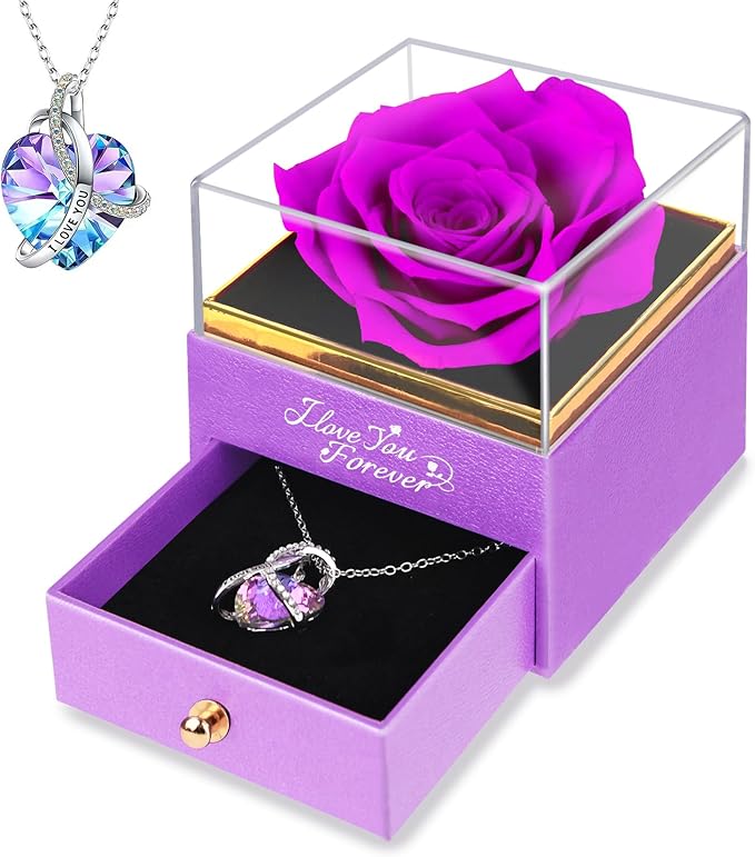 - Preserved Flowers with Necklace: Eternal preserved roses with i love you necklace are a symbol of timeless affection, A romantic surprise for the special women in your life