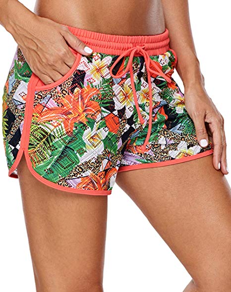 DUOLIFU Women Floral Printed Activewear Lounge Shorts with Pocket