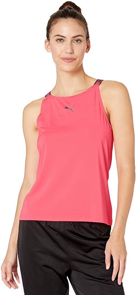 Dry cell: fabrics wick moisture away from the skin to help keep you dry and comfortable; repeated PUMA wording on shoulder straps for a flattering look; cat logo glossy print, relaxed fit