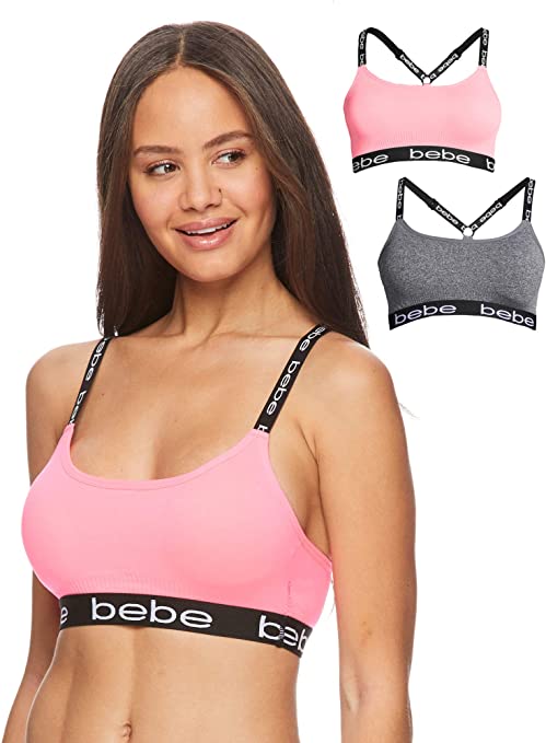 bebe Womens 2 Pack Racerback Padded Adjustable Straps Workout Sports Bra