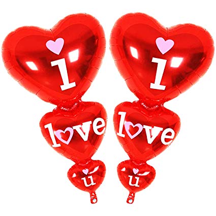 I Love U Balloon Pack of 2 – Helium Supported – Red Love Heart Balloons – Valentine Day Decorations and Gift Idea for Him or Her – Wedding Birthday Decorations – Ribbon & Straw Included