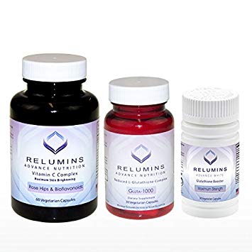 Relumins Advance Nutrition Gluta 1000, Vitamin C MAX & Booster Capsules – 3 Piece ULTIMATE WHITENING SET – NEW AND IMPROVED NOW WITH ROSE HIPS