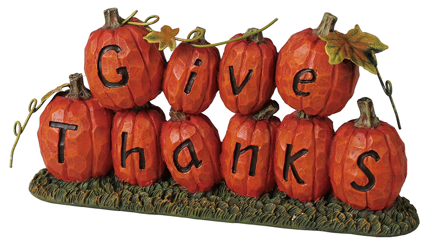 This resin figurine is a fun decorative piece to remind us to give thanks during the holiday season. Perfect for autumn, fall and Thanksgiving decorating. The figurine measures 7.25 inches wide by 4 inches tall.