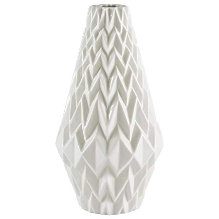An Amazon brand – Textured geometric patterns give this vase a modern, angular flair. The lovely milky white color with transparent glaze will go with any décor. Add flowers if you wish, but this vase can also stand alone as a decorative piece