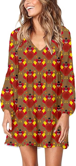 - This Bell sleeve dress makes a stylish. Your princess will love getting into and celebrating this lovely dress! It’s Made for Relaxation! This Dress also Features A V-neck, Long Sleeves, Cute Fall pumpkin spice and turkey pattern