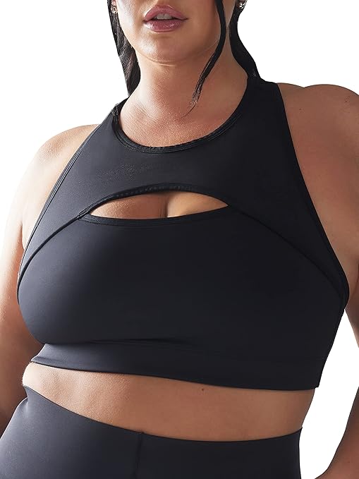 - Keyhole cutout at neckline. Silicone logo patch at back neck. Adjustable supportive back straps. Hook-and-eye back closure.