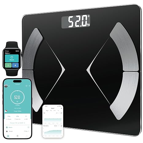 - 14 Essential Body Composition – The smart scale not only shows weight but also BMI, body fat, subcutaneous fat, body water, protein, BMR, body age etc., by electrical Bio-Impedance Measurement Technology. The data will sync to the app when your phone and scale connect successfully. It makes you know more data clearly about your body in time and track progress easily on your phone.