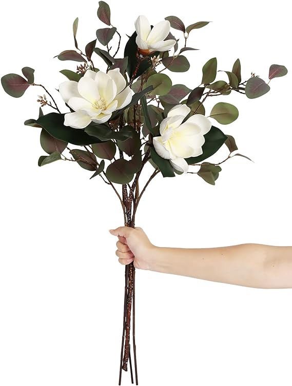 - Fatures: faux magnolia flowers is made of quality PU latex silk, with real touch and 3D looking.