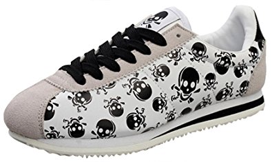 Unique design with fashion skull printed on upper and featuring a flexible and durable rubber sole.