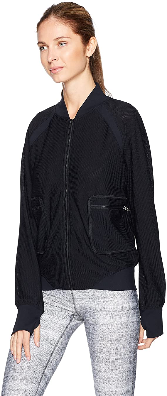 The Boyfriend Bomber is made with DryFuze sweat wicking material that keeps you cool and dry during workouts and weekend getaways. The rib trim detail and ultra-soft spongy mesh material add comfort to this layering piece.
