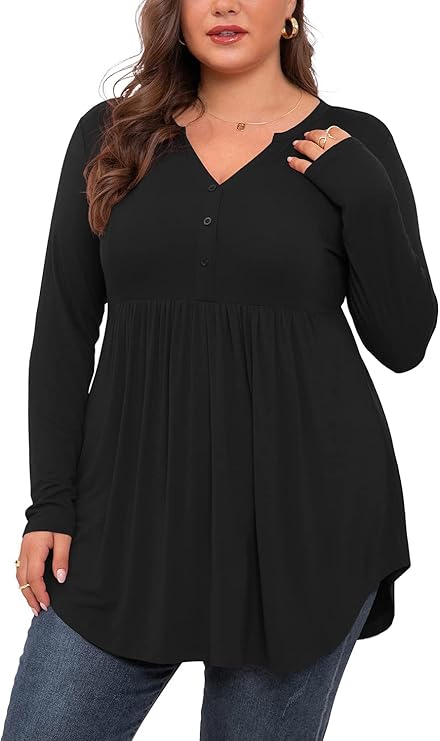 - 【Match】: Wardrobe must-have/women basic shirt/fashion shirt good coverage for casual and formal days.Plus size henley v neck shirt easily match with leggings or jeans,shorts,pants,boots, heels