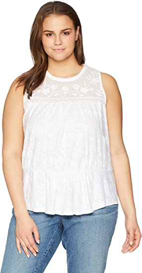 Lucky Brand plus sleeveless fashion knit tiered jacquard tank top