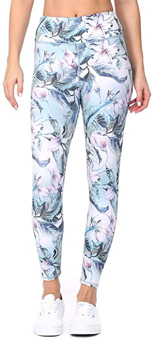 EVCR Compression Leggings for Women – 7/8 Length Non See Through Soft Athletic Yoga Pants for Workout, Spring Bloom, X-Large