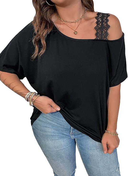 - Casual lace trim womens summer tops for curve