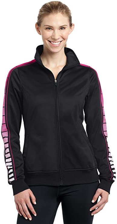 Stay on track in this comfortable track jacket that features piping and sublimated dot print sleeve panels for bold graphic interest. 100% polyester tricot Soft-brushed backing Gently contoured silhouette Cadet collar Slash pockets Rib knit cuffs and hem Single stripe sleeve graphic