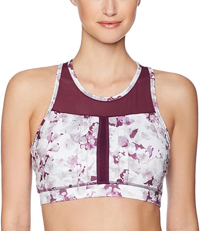 Up your style game with a trend-forward sports bra that combines breathable mesh with feminine pin tuck details. A classic racer back is transformed with sheer paneling and sleek cutouts. This style comes in a variety of different colors and patterns, it’s sure to become your go to sports bra.