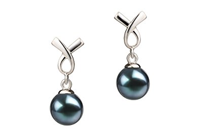 Have some fun with these high-fashion drop style cultured pearl earrings, and you’ll be sure to make a statement they won’t soon forget. These 6 – 7 mm black Japanese Akoya cultured pearls are dangling from sterling silver settings that create an interesting ‘twist’ for all of your admirers to see. Such high quality cultured pearls are very round, exhibit amazing luster, and will last for several years with the correct wear and care. You’ll be taking advantage of the perfect combination of classic jewels and modern design with these pretty baubles. Pair them with your favorite cultured pearl or silver necklace to dress them up or down as you please, and they’ll become your ideal choice for everyday wear. Your earring set will be carefully packed and shipped to you in an elegant jewelry box and accompanied by lots of free extras.
