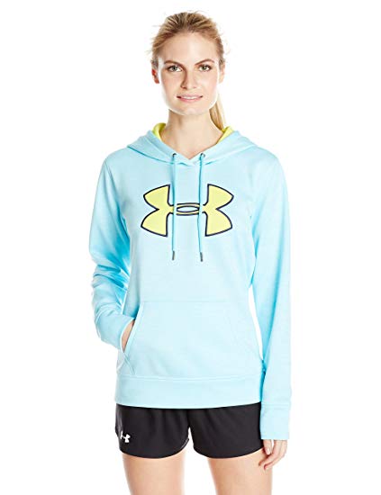 Armour Fleece fabric finished with highly water-resistant UA Storm technology . Soft, brushed inner layer traps heat for all-day warmth & comfort. Material wicks sweat & dries really fast. Adjustable 2-piece hood with crossover neck for easy layering. Updated front kangaroo pocket. Ribbed cuffs & hem. UA Big Logo front graphic. Allover heathered effect.