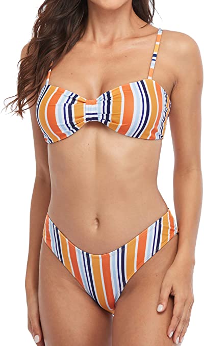 BeautyIn Womens Striped Color Block Tie Back Two Piece Bikini Swimwear Swimsuits Sets