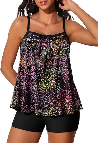 - 【TANKINI TOP WITH ADJUSTABLE STRAPS】The swimwear top with adjustable shoulder strap and removable push-up padded bras which offer you great support. And the loose hem can perfectly cover the abdomen, showing your curves, and making your body slimmer and charming.