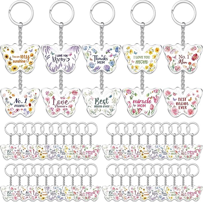 - Packaging information: you will receive 50 mother’s day keychains, including 10 styles, 5 of each style, and the butterfly keychain comes with 10 different floral patterns. the quantity is sufficient, the styles are diverse, and the colors are bright. whether you want to apply it yourself or give it to your mother, grandmother or important female friends as a mother’s day gift, it is a good choice