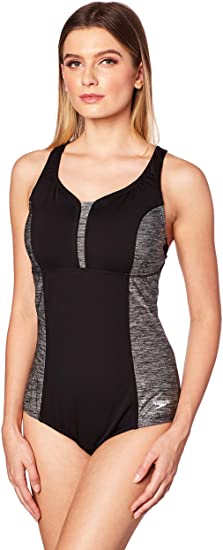 Enhance your pool performance and figure with this hard-working swimsuit. Constructed with compression mesh lining that slims the midsection and removable bra cups offering support and subtle shaping, this style is designed to flatter. Heathered endurance+ fabric delivers powerful shape retention and fade-resisting properties so you can be sure this suit will last for seasons to come.