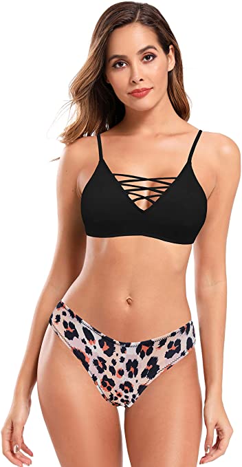 SHEKINI Women’s Leopard Print Swimsuit Strappy Top Back Criss Cross Bikini Set