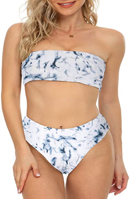 I2CRAZY Womens Bandeau Two Piece Bikini Swimsuits Strapless Top with High Cut Bottom Bathing Suit